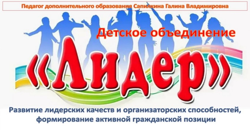 Детское объединение «Лидер» социально-педагогического направления. Руководитель объединения педагог дополнительного образования Сапилкина Галина Владимировна. Программа «Лидеры: территория успеха» призвана помочь ребятам стать успешными. В объединении «Лидер» подростки развивают лидерские качества и организаторские способности, навыки делового общения, работы в команде, умение избегать и разрешать конфликты.