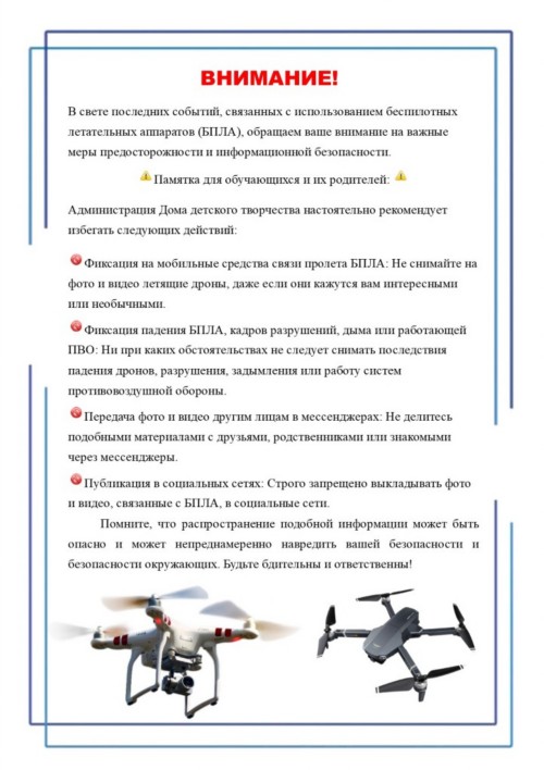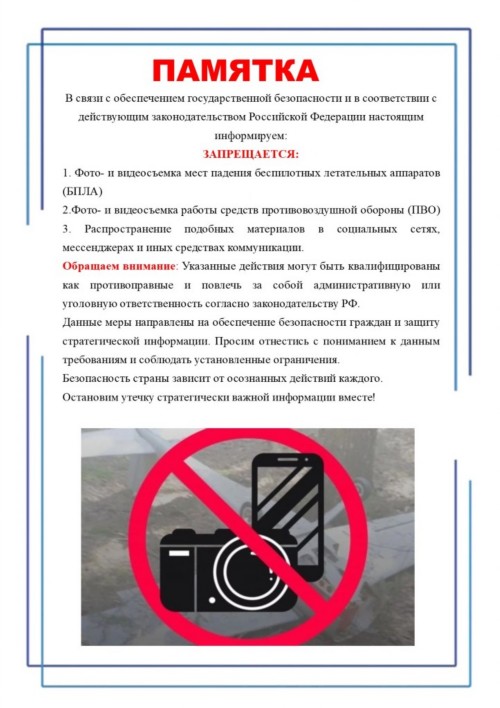 Разъяснительная информация по недопущению фактов фиксации пролёта бепилотного летательного аппарата