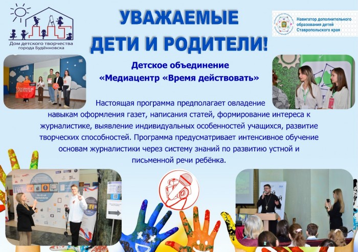 В октябре 2023 года в городе Буденновске на базе Дома детского творчества открылся медиа-центр, где ученики 5-11-х классов осваивают различные направления журналистики